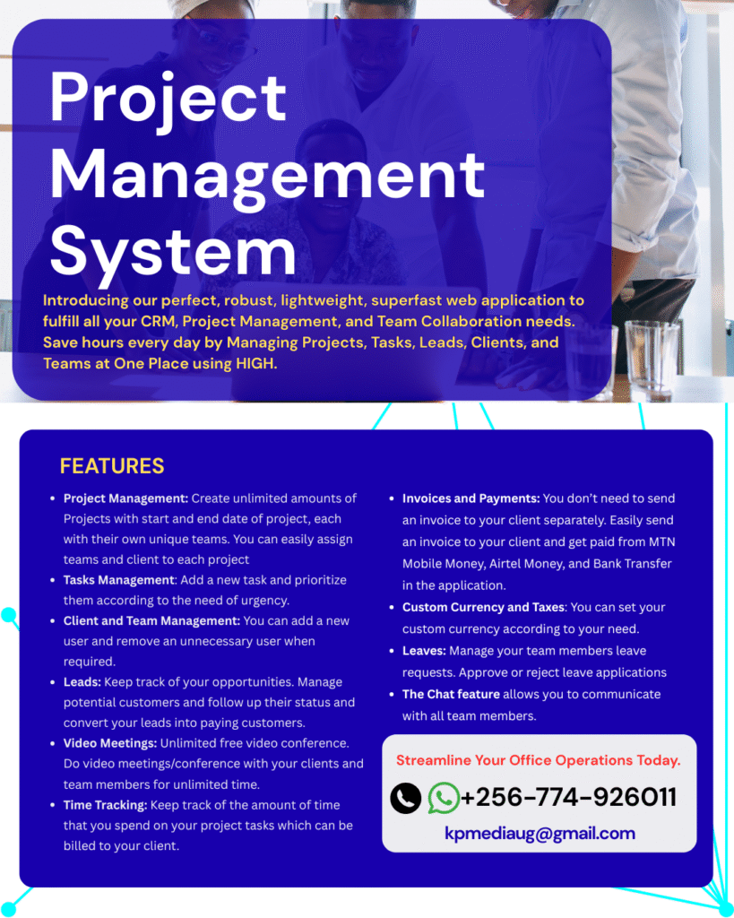 At KP Media Uganda, we specialize in building robust, user-friendly, and scalable business management systems tailored to your exact needs. Whether you manage a school, hospital, retail outlet, or service-based company, our custom software helps you save time, improve efficiency, and gain full control over your operations.